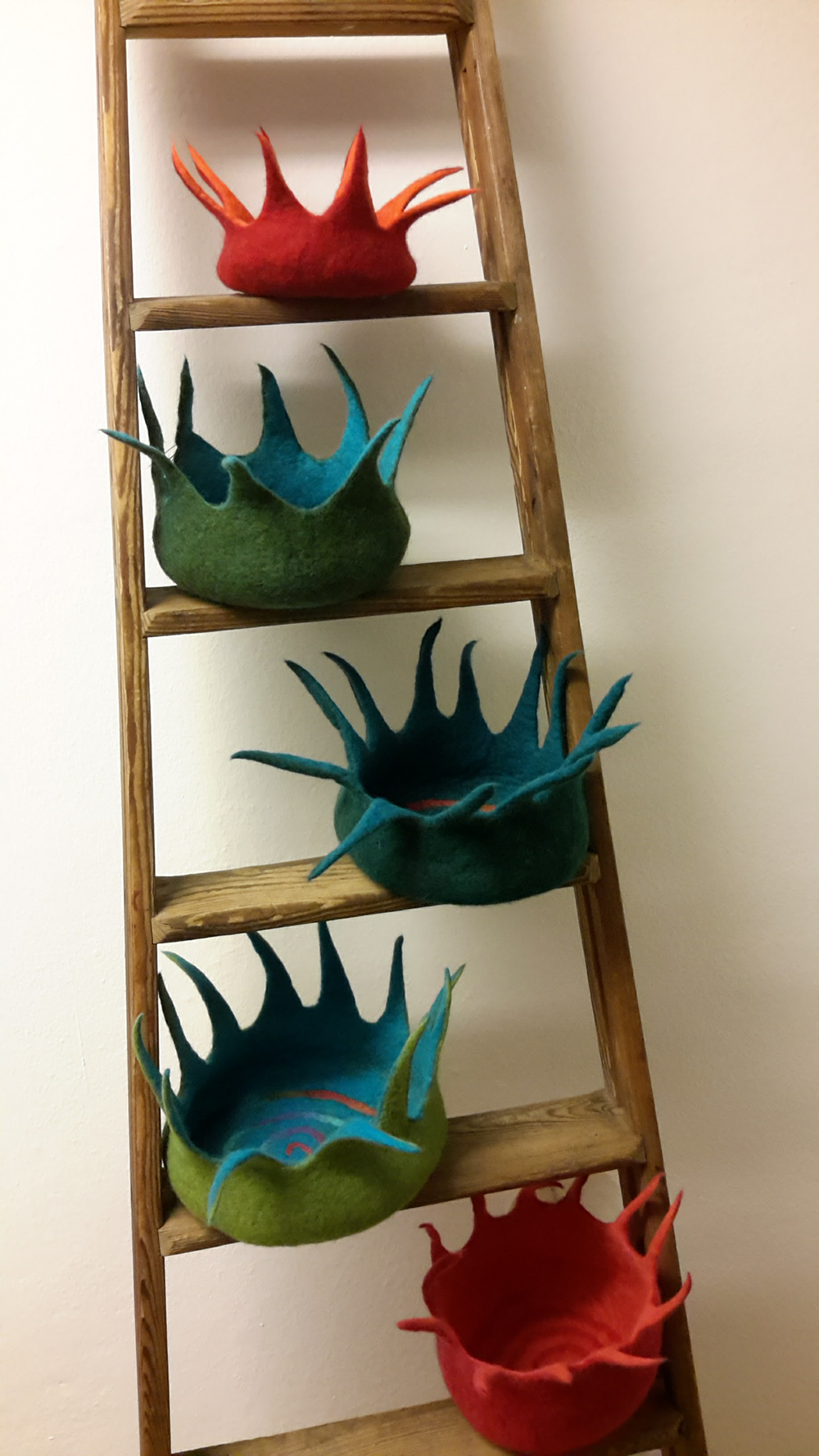 Arbeitsschwerpunkte Filzbekleidung, Gebrauchsgegenstände, Dekoration aus Filz