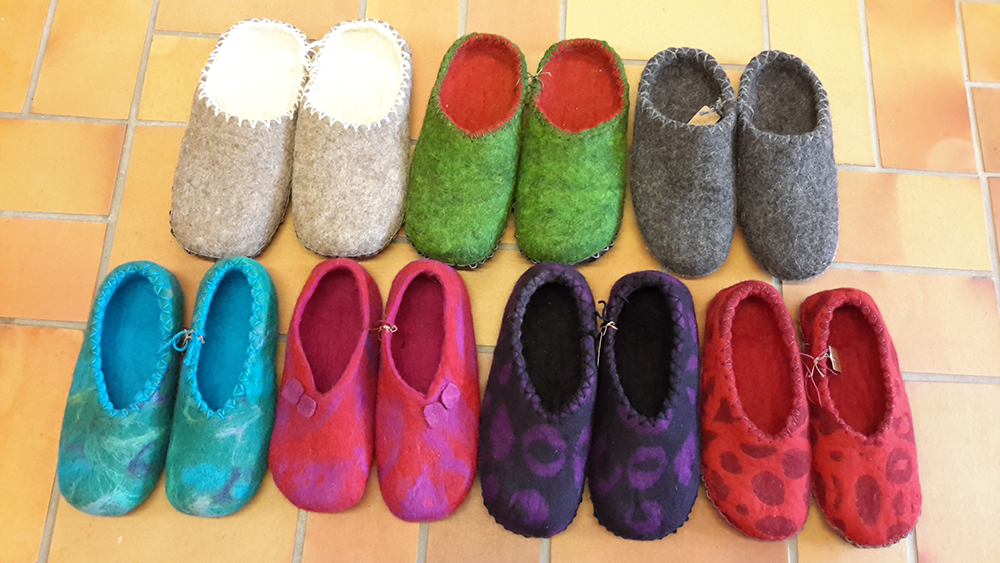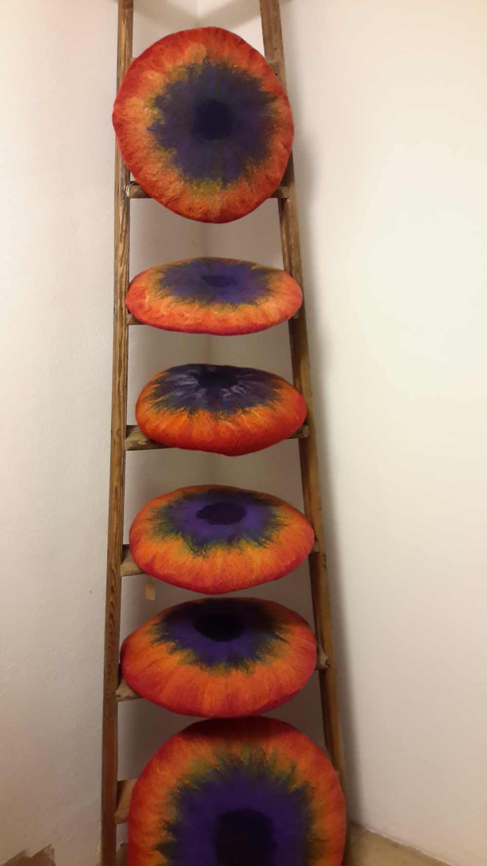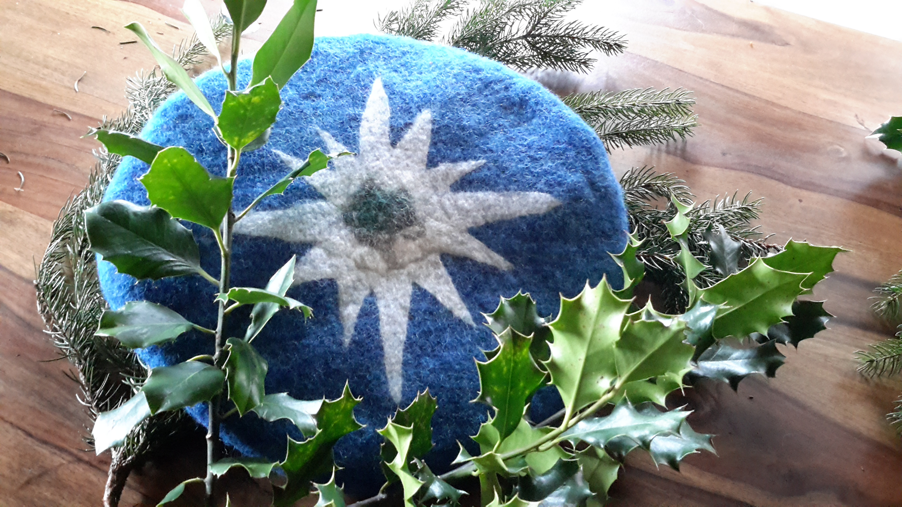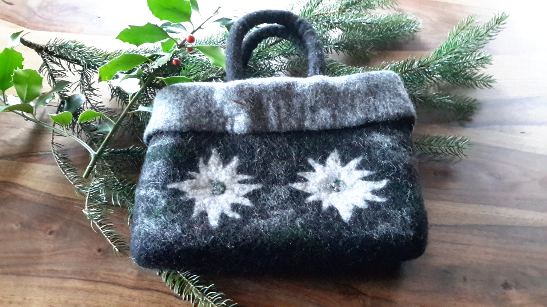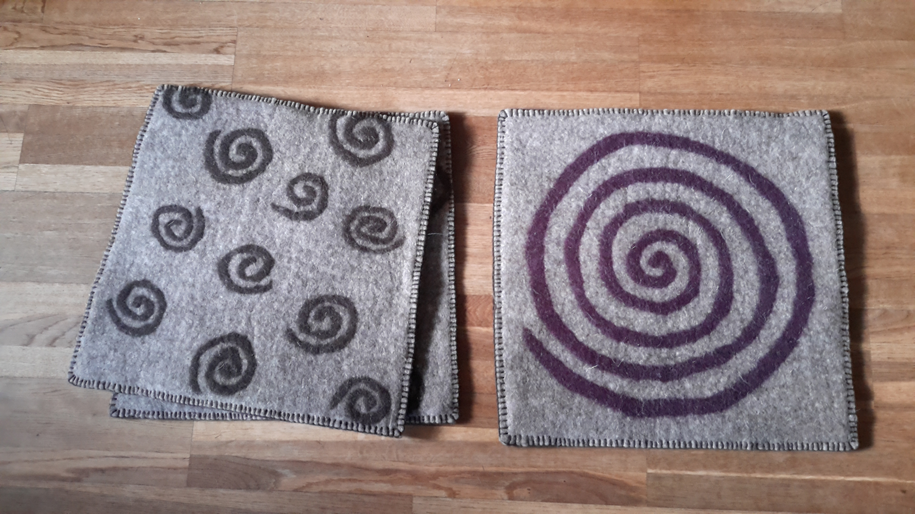 Filzen ist eine alte Handwerkstechnik. Man verarbeitet Wolle vom Merino- oder Bergschaf, nur mit Wasser und Olivenseife. Überwiegend verwende ich Wolle aus dem Alpenraum. So entstehen Sitzkissen, Hausschuhe, Taschen, Schals, Hüte, individuelle Kleidungsstücke, Gebrauchsgegenstände, Dekoteile und mehr. Ich setze auch Ihre Ideen oder Wünsche - verschiedene Farben, Größen, Formen usw. - gerne um.